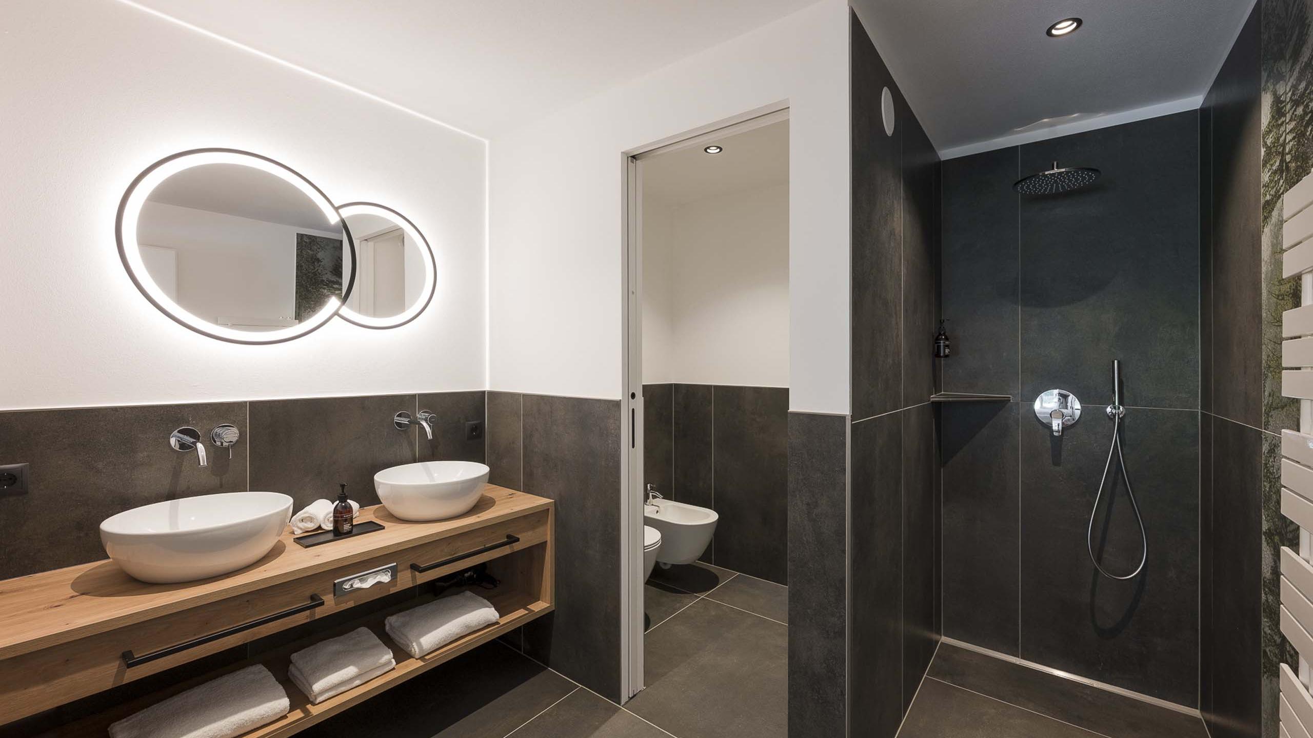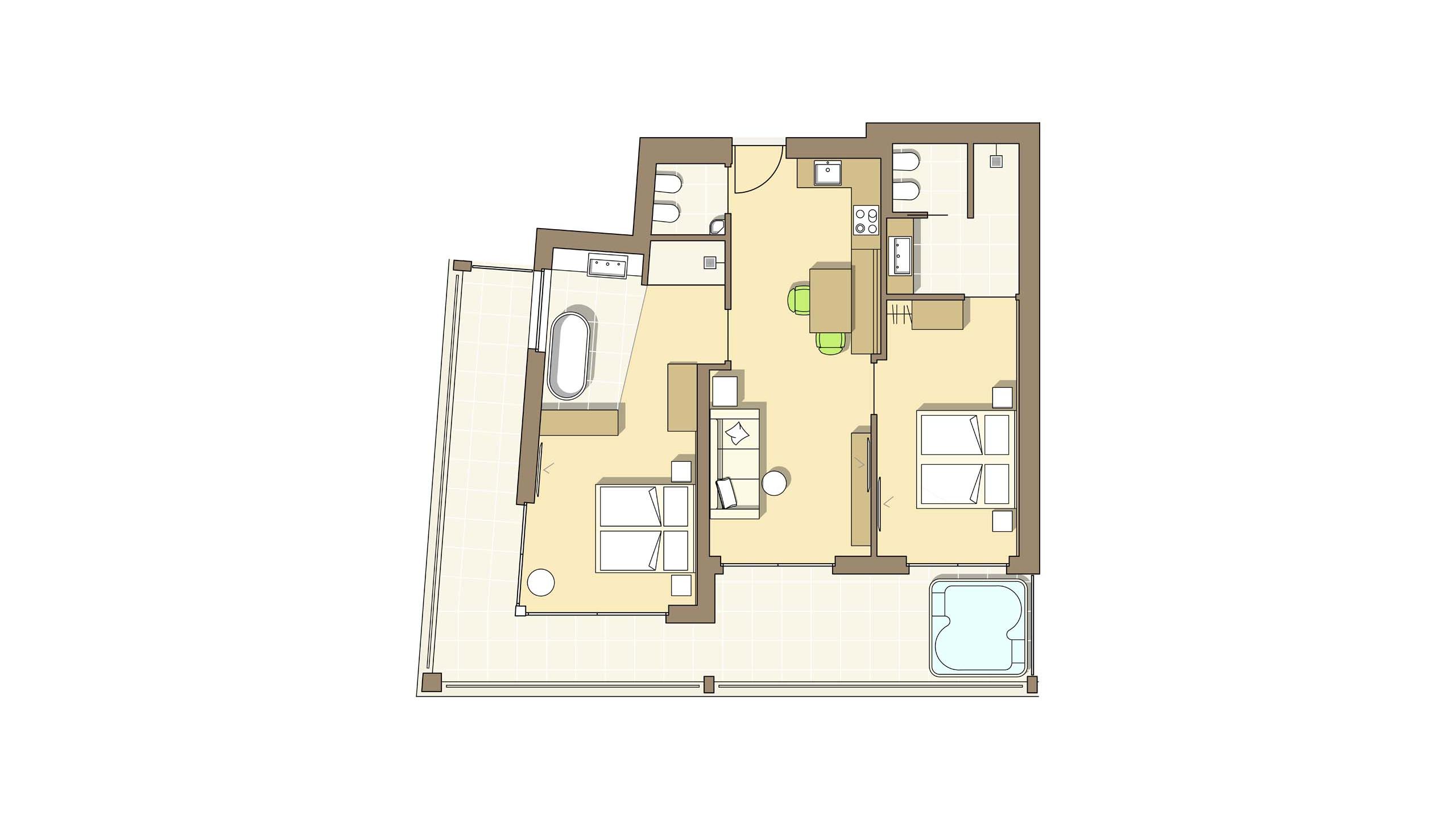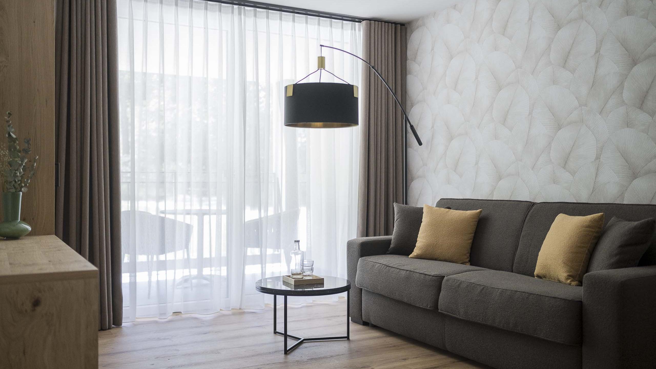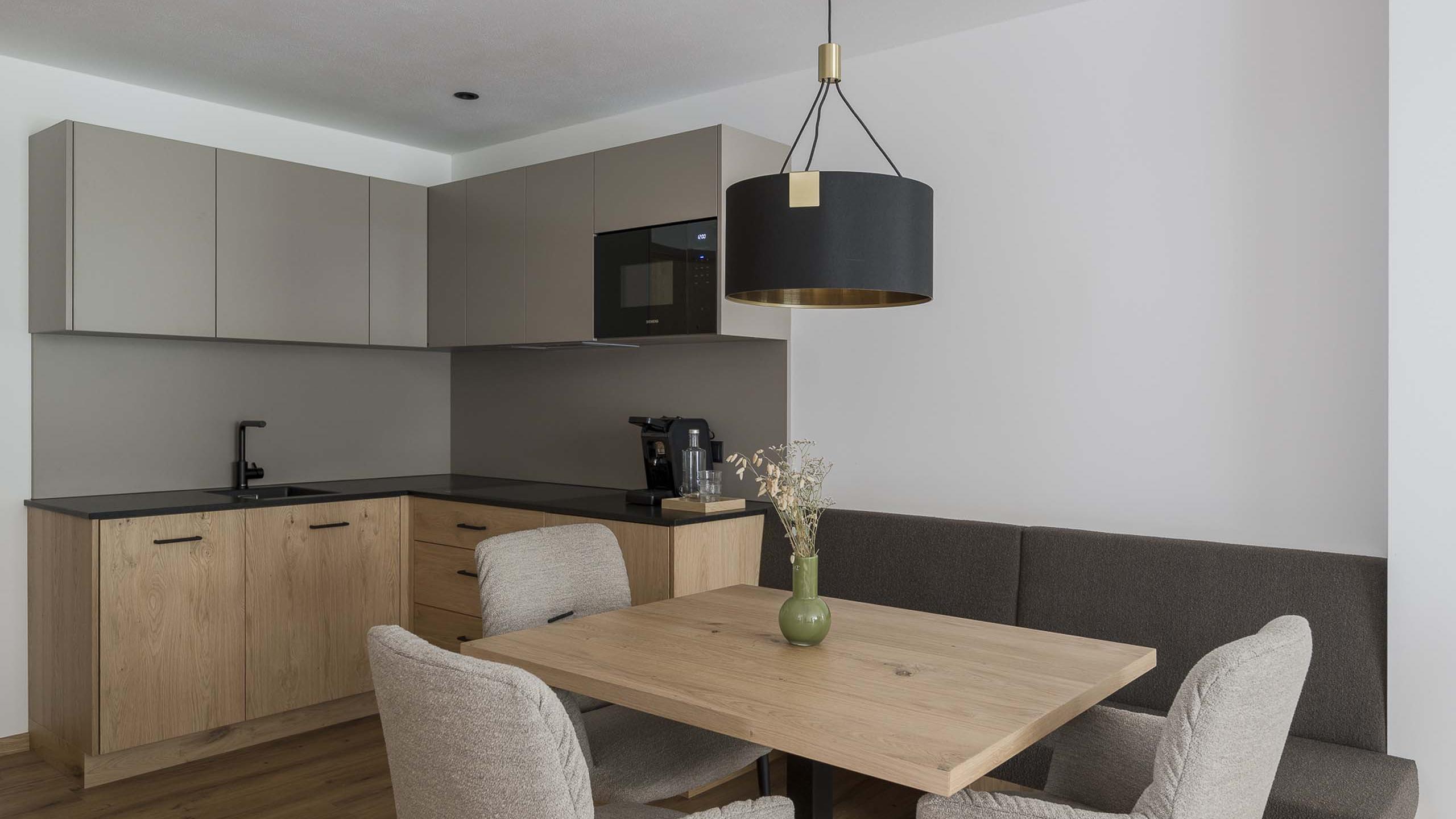 Geräumiges Apartment mit 2 separaten Schlafzimmern, Schlafcouch und viel Platz zum Kind-sein und Entfalten. Sanfte, gedeckte Farben sorgen für eine erholsame Stimmung stilvolle Designelemente verleihen dem Apartment das besondere Etwas. Es ist ausgestattet mit einer Küchenzeile, einem Wohn- und Essbereich, zwei Badezimmern (eines mit Dusche, eines mit Badewanne), separatem WC sowie mit einer 36 m² großen Terrasse.