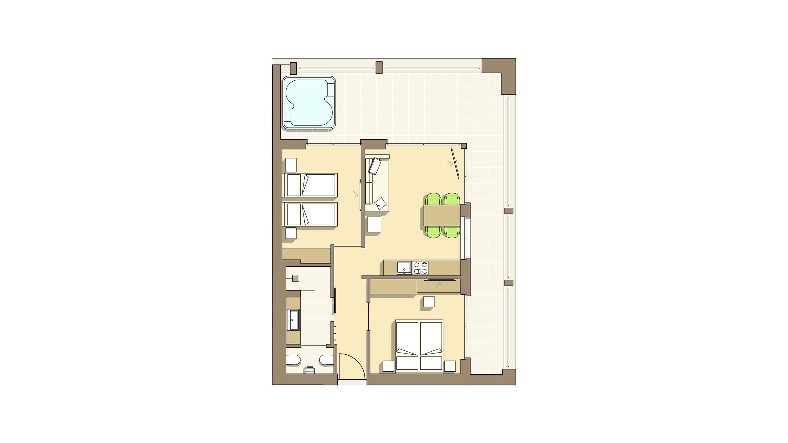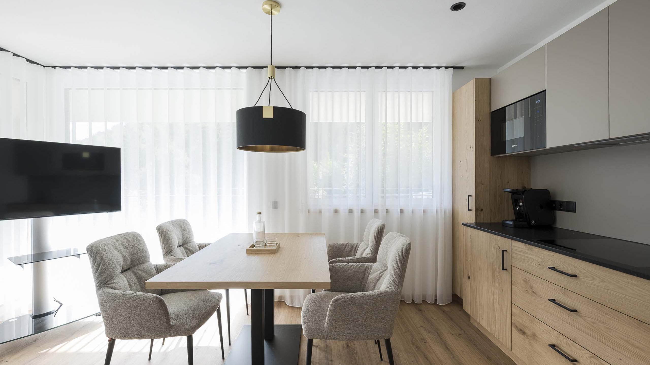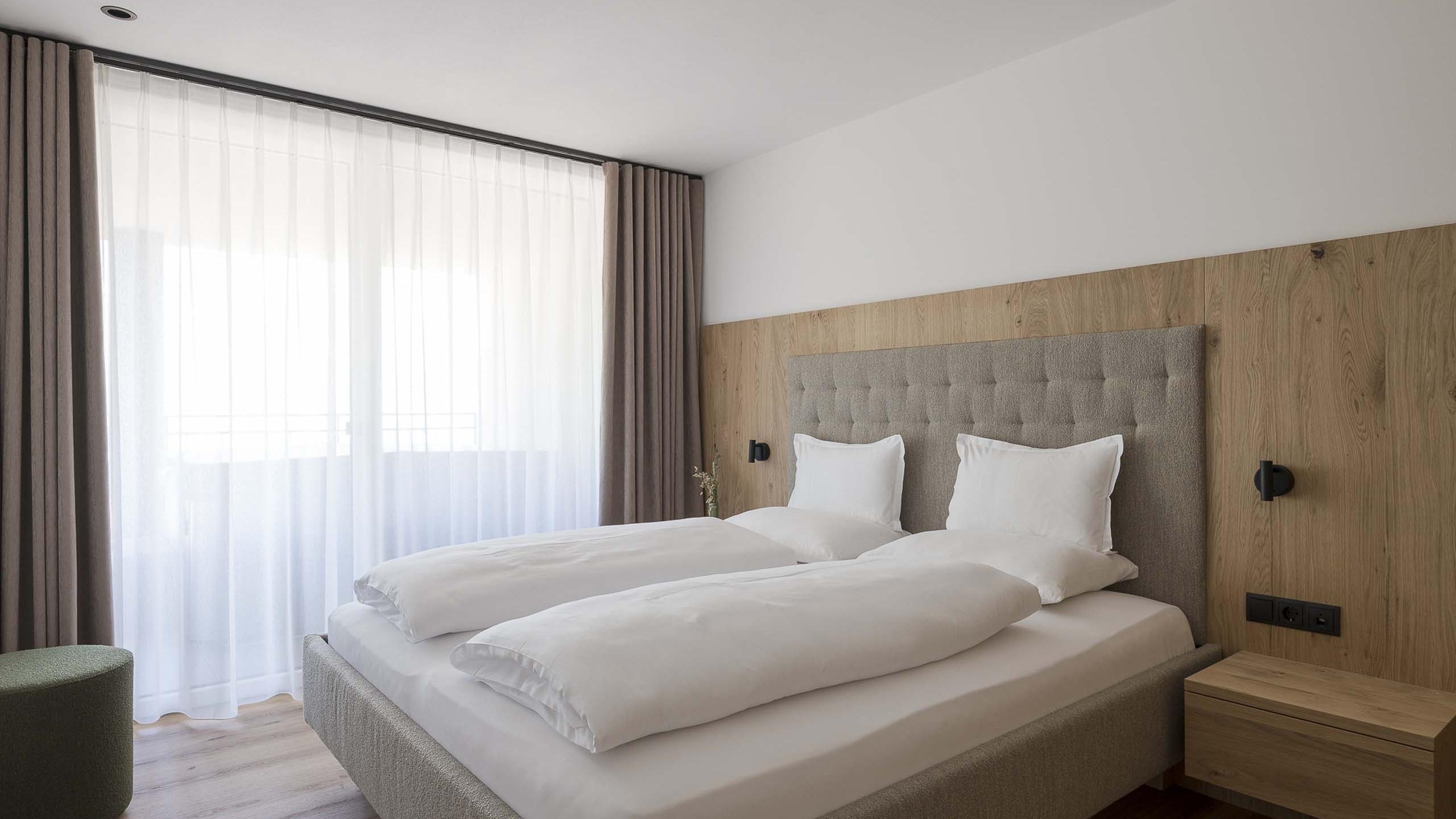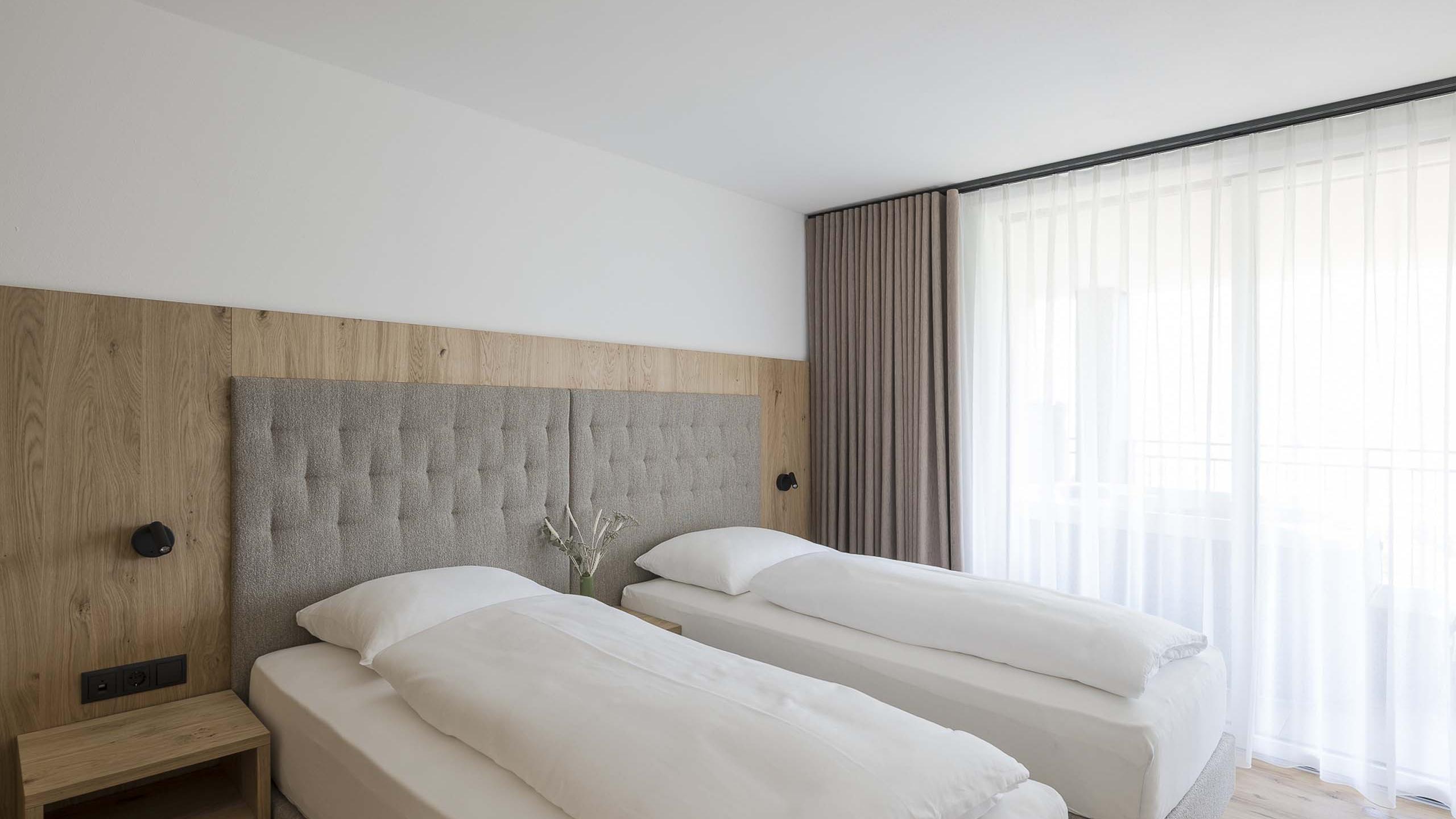 L’appartamento Tiarella vanta due accoglienti camere doppie e un ampio soggiorno con zona living e divano letto. Il design: essenziale, elegante, rilassante. La posizione al primo piano offre una vista piacevole e tanta luce. Completano l’appartamento un angolo cottura funzionale, un moderno bagno con doccia, un WC separato e una terrazza soleggiata di 33 m². I toni delicati e tenui infondono relax, mentre gli eleganti elementi di design conferiscono all’appartamento un tocco speciale.