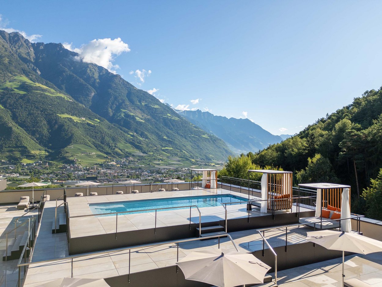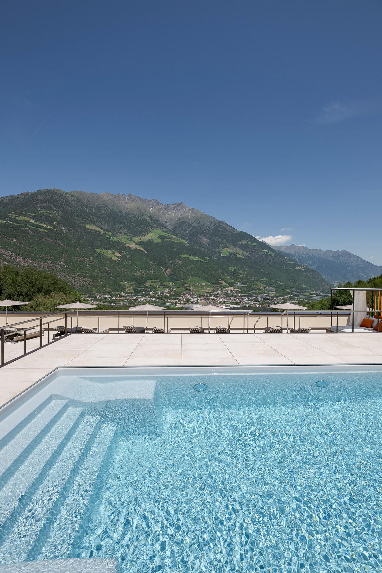 Benvenuti sulla nostra terrazza sul tetto con Family Sky Pool riscaldata, Jacuzzi e biosauna. Qui, oltre a godervi un bel bagno rilassante o una rilassante seduta in sauna, avrete la possibilità di staccare mentalmente dalla routine quotidiana. Che vogliate rilassarvi sulle sdraio o fare un tuffo in piscina, che vogliate godervi la quiete o il divertimento, la nostra terrazza è il luogo preferito di grandi e piccini.